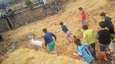 La tarde prometía y el tiempo no deslució la primera fiesta del Arroyo Froya de Lumbrales. Al menos 180 personas acudieron al evento organizado por Francisco Herrero 'Boyero' para los amigos que habitualmente acuden al bar la Plaza, establecimiento que regenta en Lumbrales. Dos añojos se dieron suelta en una finca particular, y de su lidia salieron bonitos recortes y pases de capote y muleta. La nota graciosa la dieron los más pequeños, que tuvieron su particular momento al jugar a la 'agarrada' con un marranito que embadurnaron de grasa, juego por el que también recibieron premios incluidos.