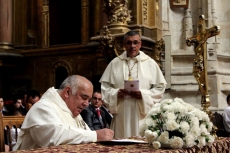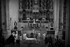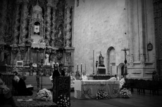 Durante el rito de la bendición han intervenido varios miembros de la Archicofradía, el Padre Prior de los Dominicos, acompañados por un coro. Al finalizar quedó expuesto a Devoto Besapies de los Fieles.