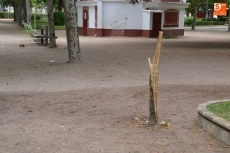 En esta ocasión, las víctimas de los vándalos han sido árboles 'jóvenes' situados en el Parque de La Glorieta, en su zona de entrada por la calle Laguna. Como se puede ver en las imágenes, varios árboles han sido directamente rotos mientras que al menos otro acabó la noche tumbado en el suelo.