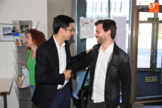 El portavoz socialista, José Luis Mateos, entrega el decálogo del PSOE a los concejales de Ciudadanos