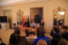 El concejal de Turismo, Julio López, ha recibido hoy a un grupo de alumnos extranjeros, del Liceo Saint Paul (Lille, Francia), que realizan sus estudios de español en el Colegio Delibes. Los jóvenes han recibido su wellcome pack y han disfrutado de las vistas desde el balcón del salón de recepciones del Consistorio.