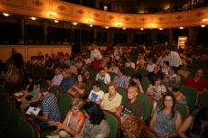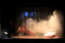 El teatro Liceo ha acogido esta tarde la representación de la obra 'Cuadro de amor, al fresco' de Komo Teatro, un espectáculo en la que los espectadores han asistido a un pequeño paseo a través de lo cotidiano.