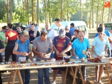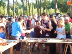 Tarde de fútbol en Juzbado con tercer tiempo incluido, y es que después del encuentro público y jugadores han podido disfrutar de una rica parrillada. El campo de fútbol El Vado acogió este sábado el partido de despedida de la temporada entre Juzbado CF y Veteranos UDS, con muchos goles y que se resolvió con un apretado triunfo para los visitantes (4-5). Buena sintonía en el campo y buen ambiente enntre el público. No faltó la animación de la charanga, y entre fogones, los cocineros (vecinos del municipio) encargados de tenerlo todo listo al final del partido.