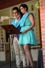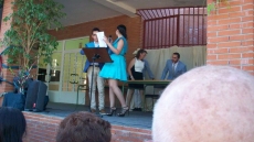 El calor agobiante deslució en parte la graduación, haciendo que familiares y amigos se refugiasen bajo los árboles en busca de sombra. Sin embargo, esto no evitó que los graduados celebrasen su día grande con un acto que dio inicio con la intervención del director, Fernando Vázquez Mourelo, y el posterior discurso de los mentores del grupo, Marisol Hernández y el propio director. Seguido a esto se procedió a la imposición de bandas. Finalmente, dos alumnos tomaron la palabra para hacer un repaso a sus años en el centro.