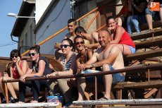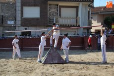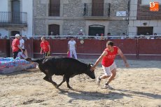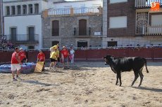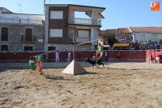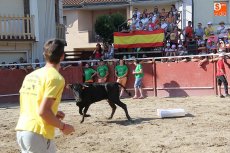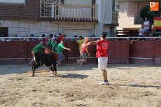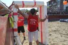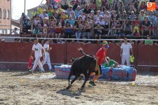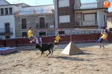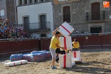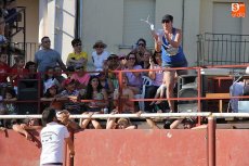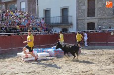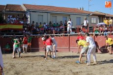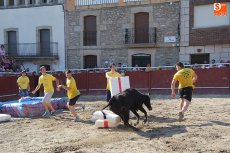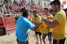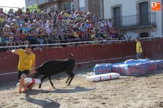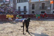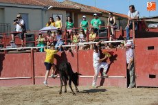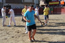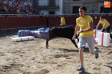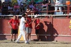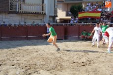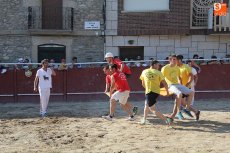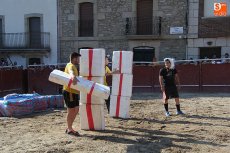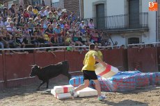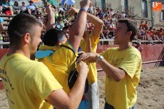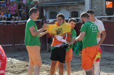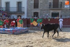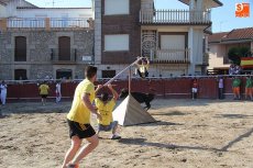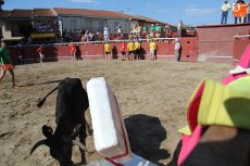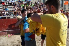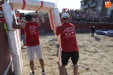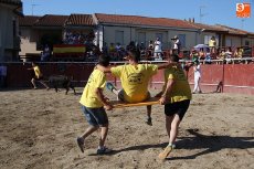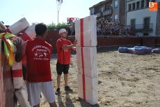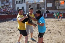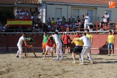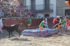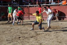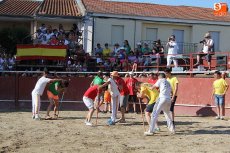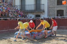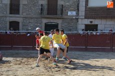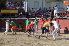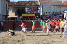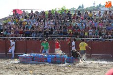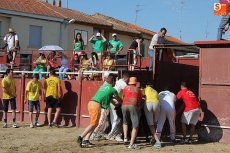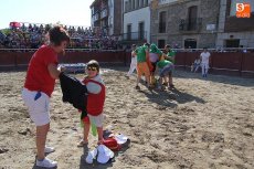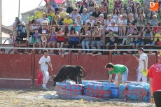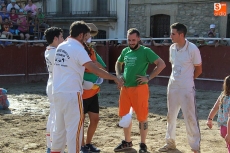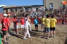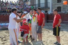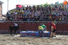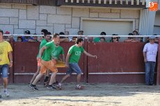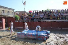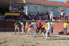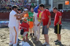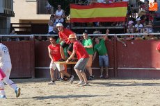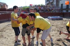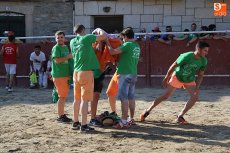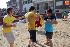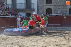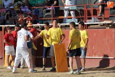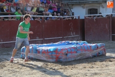 Y en medio del festín de carcajadas se encontraba la vaquilla, aunque no siempre, porque la variedad de pruebas en la competición es su principal atractivo. Una pequeña piscina, un trampolín o solo un palo de escoba servían para que la prueba más sencilla se convirtiera en todo un reto para los concursantes, tres grupos vestidos de colores y cuya final fue para los verdes.