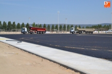 Tras la capa de aglomerado asfáltico, el siguiente paso debe ser la colocación del pavimento deportivo, que tal y como reza el proyecto, deberá ser "césped artificial de última generación".