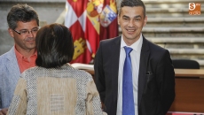 Posteriormente se constituyó la mesa de edad con los diputados presentes en el acto de menor, en la persona de Carlos Fernández Chanca, y mayor edad, Alejo Riñones. Posteriormente se pasó a la constitución de la Corporación con la votación de los miembros y el escrutinio de los votos que resultó, como estaba previsto, con los 13 votos del PP a favor de Javier Iglesias, los 9 del PSOE en apoyo a Carmen García Romero, los dos de Ciudadanos para Manuel Hernández y Jesús San Antonio Benito y uno de Ganemos para Gabriel de la Mora.