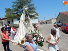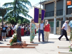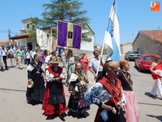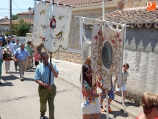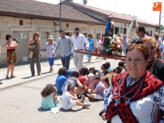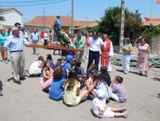 Al toque de las campanas las puertas de la iglesia se abrieron, tras la celebración de la misa castellana, para dar paso a la tradicional subasta de pendones y estandartes que este año alcanzó los 285 euros, siendo el pendón de la Virgen el que alcanzó la puja más alta, 105 euros. También se subastaron el pendón de San Pedro, el estandarte del Santo Cristo y el estandarte de San Senen. A continuación, la procesión y bendición de los niños, para completar el recorrido de nuevo a las puertas de la iglesia con los bailes charros en honor al Patrón y a la Virgen.