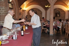 Una vez trasladados al restaurante Apartadero Dos, el presidente de este colectivo de mayores, José Herrero, hizo entrega de una placa como socio de más edad a don Ricardo García García, de 91 años, que fue párroco de Lumbrales.