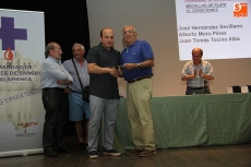 Sebastián Cid Bernal y Conrado Ramos Tapia recibieron este miércoles en Vitigudino la Gran Cruz de la de la Hermandad de Donantes de Sangre, distintivo con el que se reconoce su actitud solidaria tras haberse sometido a 50 donaciones de sangre. En este acto de entrega de medallas de la Hermandad fueron 15 en total las personas que recibieron sus respectivos distintivos, bien de las manos del alcalde Germán Vicente, del teniente de alcalde Javier Muñiz o del concejal del PP José Hernández, que acompañaron a los responsables de este colectivo con su presidente provincial al frente, Rogelio Manuel Carrasco, además del delegado en Vitigudino, Baltasar Vicente.