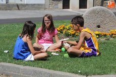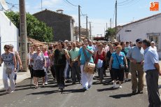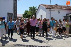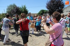 En torno a las 12.30 horas comenzaba el pasacalles para recorrer algunos de los lugares más significativos del pueblo, un circuito que se encargaban de animar los monitores, Javier 'El Pardal' con la gaita y el tamboril, y Casta Caparrós con su inagotable vitalidad en el baile. Así, la comitiva, también con el alcalde al frente, llegaba a un pequeño pero coqueto parque donde surgiría el baile entre los participantes. El pasacalles seguiría el camino hacia una exposición de manualidades realizadas por la Asociación de Mujeres de Villar de Peralonso, entre las que destacaban varias pinturas obra de Chari, aficionada al arte y enamorada de la grandeza de rincones como el Pozo de los Humos o la Code de Mieza, la intimidad del Pozo Airón o la historia de la ermita del Cristo de las Mercedes, además de la eternidad de las empedradas calles albercanas.