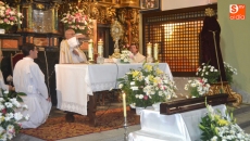El bastón de Santa Teresa ya se encuentra en Peñaranda. Pasadas las cinco de la tarde, el presidente de la Hermandad de Cofradías, Moisés Pérez recibía la reliquia en el atrio del Monasterio de la Encarnación de las Madres Carmelitas, un solemne acto en el que la alcaldesa de la ciudad, Carmen Ávila de Manueles, acompañada por una nutrida representación municipal, le introducía hasta el altar mayor del templo donde han dado comienzo los rezos por parte de las decenas de fieles asistentes a esta recepción.