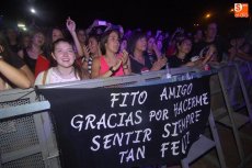 Llegó y triunfó. No se esperaba otra cosa de Fito y los Fitipaldis en su regreso triunfal a la villa guijuelense. El bilbaíno ha abierto esta noche el primero de los conciertos de verano y festivos organizados por el Ayuntamiento de Guijuelo con un recinto de espectáculos Gabriel y Galán hasta la bandera para seguir la actuación de uno de los grupos de más gancho.
