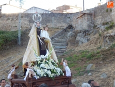 La imagen de la Virgen del Carmen ha salido este miércoles de la ermita escoltada por los vecinos y fieles para recorrer la subida hasta la iglesia de Santa María La Mayor. Acto que precede a la celebración del Novenario de la Virgen del Carmen en los días previos a la festividad del Carmen (día 16 de julio) y que, siguiendo la tradición, tendrá como colofón la procesión de regreso a la ermita, el próximo día 18.