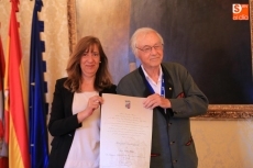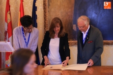 La concejala de Salud Pública, María José Fresnadillo, nombró este jueves Huésped Distinguido al premio Nobel de Química Robert Huber, participante en el IX Congreso de la Federación Española de Biotecnólogos BAC-2015. El acto fue en el Salón de Recepciones del Ayuntamiento de Salamanca y tuvo la presencia de varios de los organizadores del congreso que se celebra hasta este viernes en la Hospedería Fonseca.