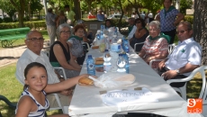 El momento principal de la jornada se desarrollaba en el parque de Los Jardines en el que los mayores integrantes de las asociaciones de las comarcas de Peñaranda y Las Villas disfrutaron de una comida de fraternidad en la que estuvieron acompañados por una nutrida representación del consistorio de la ciudad.