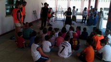 El motivo de la visita, durante la cual pudieron saludar a los niños participantes, era mostrar el apoyo del Equipo del Gobierno al desarrollo del Programa, que en la mañana del viernes contó con la presencia del Club ArcoMiróbriga y de la Asociación de Recreación Medieval Rodericus.
