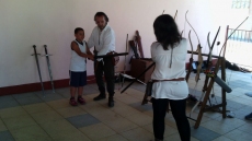Como grandes atractivos, los niños participantes pudieron coger un águila Harris y practicar el tiro con arco disparando tanto a una diana como a reproducciones de animales.