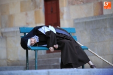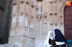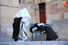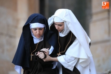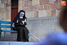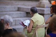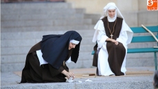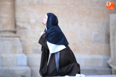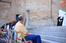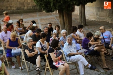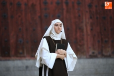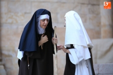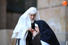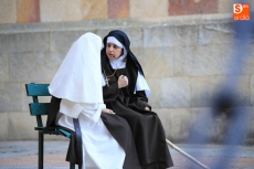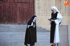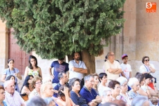 El público que este viernes se ha dado cita en el Patio Chico ha tenido la oportunidad de disfrutar, de la mano de Befana Producciones, de la obra Teresa Dos Tiempos, escrita por Mo de la Fuente y Nuria Galache, interpretada por Maite Bécares y Celia Alonso y dirigida por Nuria Galache. Una propuesta escénica dedicada a Santa Teresa con motivo de la celebración del V centenario de su nacimiento que muestra a la Santa con 67 años, enferma, cansada de la vida y anhelando morir para encontrarse con el Creador.