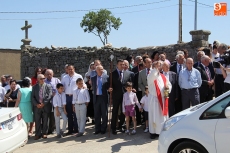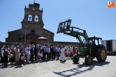 El grupo de folclore Santa María de Liminares fue el encargado de poner la nota tradicional este sábado a los actos organizados en honor a San Cristóbal. Tras la misa en la ermita de la Virgen del Árbol, ceremonia que estuvo amenizada por Diego, joven tamborilero de la localidad, tenía lugar a las puertas del templo la bendición de vehículos, este año con el paso de un tractor como anécdota a la fila de decenas de coches.