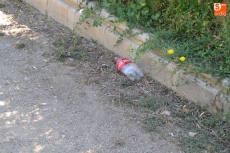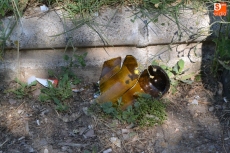 Como se puede ver en las imágenes, los del botellón del viernes al sábado -además de dejar tirado todo lo ya mencionado- no escatimaron en tirar botellas de cristal por la ladera, alguna de ellas incluso rota, con el riesgo que puede suponer para que se genere un incendio en estos días de intenso calor.