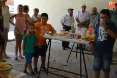Concluida la misa, los vecinos regresaron al Barrio Nuevo para disfrutar a las puertas del Centro Cívico de un aperitivo aportado por todos los vecinos. La siguiente cita del programa festivo fue a la hora de comer en el camping La Pesquera, donde los vecinos degustaron una paellada.