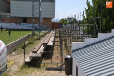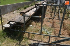 [Img #358355]Operarios del Ayuntamiento de Ciudad Rodrigo iniciaron en la mañana del miércoles ?tras intentarlo sin éxito en la jornada del martes por culpa de las avispas- el proceso de desmontaje de la grada 'móvil' situada en el Francisco Mateos, que ha estado siempre situada más allá de la grada cubierta del campo.