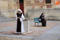 El Patio Chico ha acogido una nueva cita con Teresa Dos Tiempos, una obra que, de la mano de Befana Producciones y escrita por Mo de la Fuente y Nuria Galache e interpretada por Maite Bécares y Celia Alonso y dirigida por Nuria Galache, recorre los últimos días de la Santa. Una propuesta escénica dedicada a Santa Teresa con motivo de la celebración del V centenario de su nacimiento que muestra a la Santa con 67 años, enferma, cansada de la vida y anhelando morir para encontrarse con el Creador.