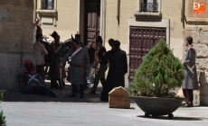 Las cámaras de cine se volvieron a encender en la jornada del domingo en el centro histórico de Ciudad Rodrigo para el rodaje de nuevas secuencias de los proyectos cinematográficos que está llevando a cabo la productora mirobrigense Three Columns Entertainment junto a Goya Producciones.