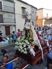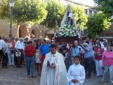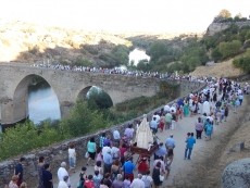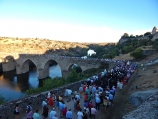 LEDESMA | Tras permanecer en Santa María La Mayor para el novenario, la patrona de la villa cruza el puente viejo en solemne procesión (VÍDEO)