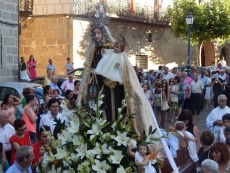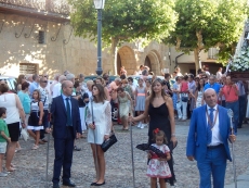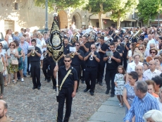 Desde Santa María La Mayor, con una Plaza Mayor a rebosar, la Virgen del Carmen ha recorrido parte del casco antiguo hasta el puente viejo, al cobijo de la muralla y escoltada por los fieles y mayordomos, portando las varas y el estandarte, y al son de la banda de música.