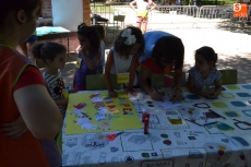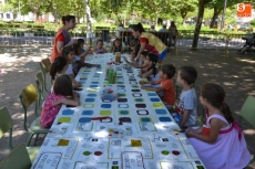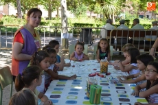 Cada mañana de actividades los chavales pasarán por tres espacios en el entorno del templete de La Glorieta. Por un lado, está el Espacio de Entrenamiento Plástico, donde todos los días se harán manualidades. En esta primera jornada, estuvieron realizando unos carteles identificativos de los tres subgrupos en los que han sido divididos los participantes de 4 a 6 años: La Súperpandilla, Los Pequefantásticos y Los Invencibles. La intención es que puedan llevarse a casa cada día alguna manualidad, como un brazalete de superhéroe o un títere.