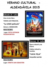 El calendario de actividades comienza el próximo sábado con la proyección de La Lego película, y concluirá el 23 de agosto con la representación de Nidos, a cargo del grupo Teloncillo Teatro. En el medio, el programa ofrece teatro infantil y para adultos, cine; una charla sobre 'Los Saltos del Duero', eventos musicales, en los que se incluye un tributo a Bob Dylan; la actuación del grupo de sevillanas de Vitigudino, 'Pasión y Baile'; una visita al laboratorio de Hidráulica de Iberdrola en Ricobayo y a al complejo de ocio con actividades náuticas; o la actuación del grupo de tamborileros de Aldeadávila, entre otras actividades.