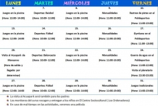 Las actividades infantiles están dirigidas a niños de entre 5 y 15 años, y entre ellas se encuentran la práctica de varios deportes y juegos, talleres de ocio, además de días de piscina y sesiones de manualidades. Estas actividades se realizan de lunes a viernes por la mañana, a partir de las 12.00 horas, en el centro sociocultural.