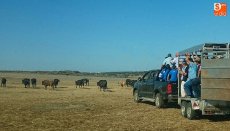 Algo más de una treintena en autobús, y otros 25 al menos en coches, viajaron este sábado hasta la finca de Calzadilla del Campo (Guejuelo del Barro) para ver los ocho astados de la ganadería de Ignacio López-Chaves que se lidiarán los días 17 y 18 de agosto en las dos novilladas sin picadores organizadas por el Ayuntamiento.