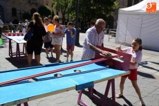Entre las propuestas destacan talleres manuales, juegos de ingenio y animación. Así, los asistentes han podido elaborar títeres de cartulina, llaveros de corcho o su propio árbol genealógico. También había un espacio con juegos como el memory, tres en raya, puzles variados, nudos metálicos y juegos de madera gigantes.