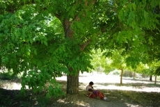 Con la linterna abro un agujero de fósforo y vainilla sobre el campo. La luna es una víscera de cuarzo mordida por los cerros. !Qué lejanas las piedras de mi infancia! Las hormigas transportan sigilosas las migajas del cielo abandonado. En el nogal la noche es la viuda de un pastor dormida entre luciérnagas y arañas. Qué lleno está el espacio de vacío. Alumbro el infinito y mi linterna es una pulga inútil. Siento amor cuando al mirar arriba, al universo, hallo en mi pecho el peso de la nada. Cómo no ser humilde en estos campos. Debajo, entre mis pies, desordenada, huye mi alma, en paz con las hormigas, remonta el vuelo y sube hasta el nogal donde la noche es la viuda de un pastor, el velo angélico de la sencillez.