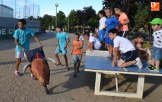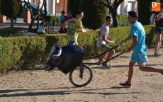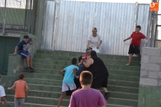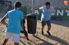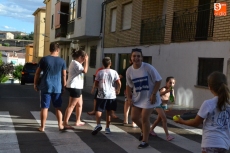 El pasacalles finalizó en el frontón del barrio, 'sede' de las fiestas durante estos días. Allí, como gran novedad, hubo un lanzamiento de polvos de colores al estilo de la fiesta Holi Colour. En este caso, los chavales se unieron lo más posible y lanzaron los polvos al aire, aunque posteriormente hubo 'guerras particulares'.