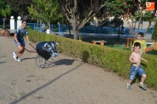 Cuando todavía estaban agotándose los últimos polvos, comenzó el primero de los varios encierros de carretones que saldrán a las calles del barrio durante estos días, siempre con el parque de la parte trasera del barrio como escenario.