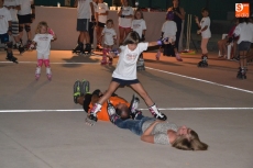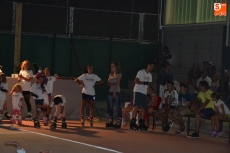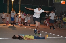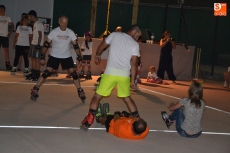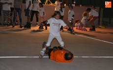 Tras el encierro, todo el mundo se marchó a cenar para regresar con la noche ya caída para disfrutar de una animada exhibición del Club Farinatos Roleros, que justamente realiza sus entrenos en la sala multiusos José Ángel Gómez. En la exhibición participaron patinadores de diferentes edades, mostrando sus diversas habilidades, con distintos grados de dificultad. En el tramo final hubo saltos de altura y de longitud.