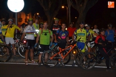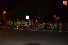 Medio centenar de ciclistas de Ciudad Rodrigo y comarca (entre ellos numerosos representantes del Club BTT de Saelices el Chico) cogieron la bici de montaña en la noche del sábado para realizar una ruta por el entorno de Miróbriga bajo la luna llena. La ruta, de unos 40 kilómetros de distancia, arrancó a las 23.00 horas junto al 'nuevo' Árbol Gordo, llamando la atención de todos los que pasaron por allí.