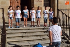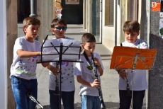 Los más de cuarenta niños deleitaron con su música a todos los acompañantes al paseo musical, así como a los curiosos que se postraban a admirar los miniconciertos llevados a cabo por ellos mismos en los improvisados escenarios de los lugares más emblemáticos de Alba de Tormes.
