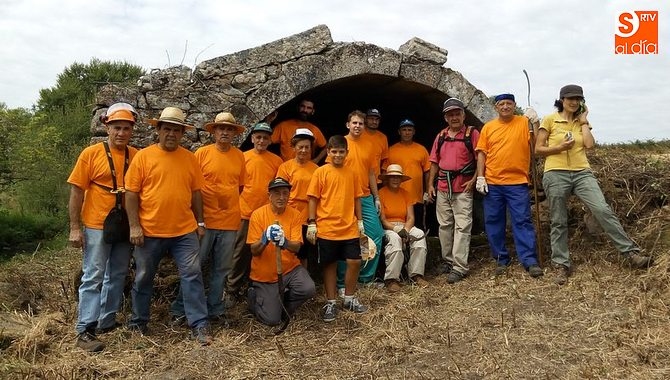 Pero la brigada estaba ya sobre el pequeño cauce del regato. Calabozos y hoces comenzaban a silbar sobre las zarzas y ortigas, las desbrozadoras comenzaban a 'bramar' y el pequeño cauce comenzaba a cobrar forma, y así más de 50 metros hasta llegar a las piedras de la emblemática fuente. Habían pasado casi cuatro horas de arduo trabajo y esfuerzo común, pero mereció la pena.