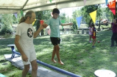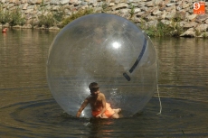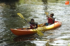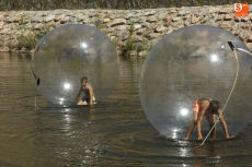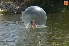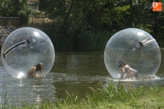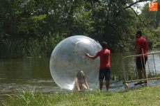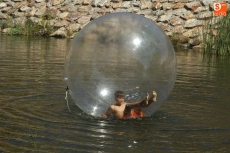 En este 'nuevo' Día del Niño hay actividades circenses, una cama elástica, juegos deportivos o un pintacaras. Además, también hay actividades en el agua como bolas gigantes en la que los niños se pueden introducir, o piraguas. En ésta actividad, además de montarse, los niños también están aprendiendo nociones sobre las clases de peces que hay en el río, dentro de la idea de que los niños "aprendan las riquezas" de la Alameda y el río, según indicó la concejal de Infancia.
