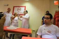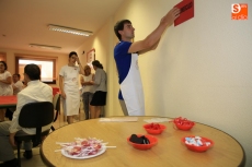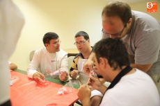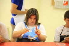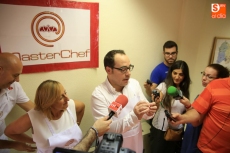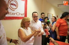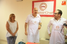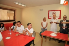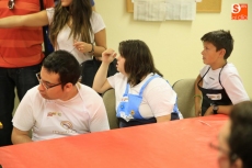 Quince jóvenes con discapacidad del desarrollo están participando estos días en una semicolonia promovida por el Ayuntamiento, con la colaboración de la Asociación Aviva. Daniel Llanos, concejal de Juventud, visitaba al grupo, en la sede de la ONCE, donde estaban realizando pruebas inspiradas en el programa televisivo 'MasterChef'.