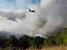 Hay movilizados agentes medioambientales y forestales, una cuadrilla BRIF, dos aviones anfibios y varios helicópteros para hacer frente a un incendio que ha obligado al desalojo de un albergue y de las localidades de Acebo y Perales del Puerto.