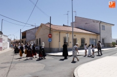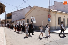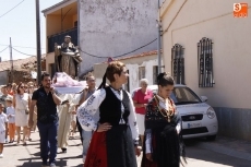 Seguidamente, el santo salió en procesión, precedido del grupo de charras y el estandarte, y recorrió las calles aledañas al templo, un desfile más corto de lo habitual debido a las obras que se están realizando en el municipio.