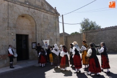 Ya de vuelta en la plaza de la iglesia, los integrantes del grupo San Marcos, acompañados de gaita y tamboril, bailaron jotas, paleos y cintas mientras los vecinos degustaban las tradicionales perrunillas. El grupo charro, que ya empezaba a prepararse mucho antes de iniciarse la misa, está formado por mujeres y niñas del municipio bajo la maestría al baile del alcalde y, ayer, con la compañía de la música hicieron las delicias de todos, también por la belleza de sus trajes, donde no faltaron galanas, segadoras, y hasta un conjunto negro de boda.