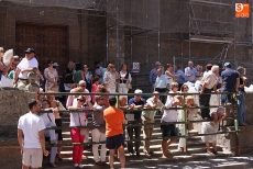Con una hora de retraso conforme a lo anunciado en el programa, algo habitual, uno a uno los astados salieron del camión para realizar el recorrido propuesto por la organización, y que a diferencia del Corpus, este tenía su inicio en la plaza de España, en la confluencia con la calle San Juan de Dios.