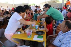 Preparada por el Bar Jerry's, la cubierta situada en la trasera de las escuelas se convirtió en un excelente merendero para más de 200 personas, que dieron cuenta de una exquisita paella, acompañada al gusto por ensaladas, embutidos y otros platos que cada familia o grupo de amigos llevaron desde sus casas, y todo regado con limonada.
